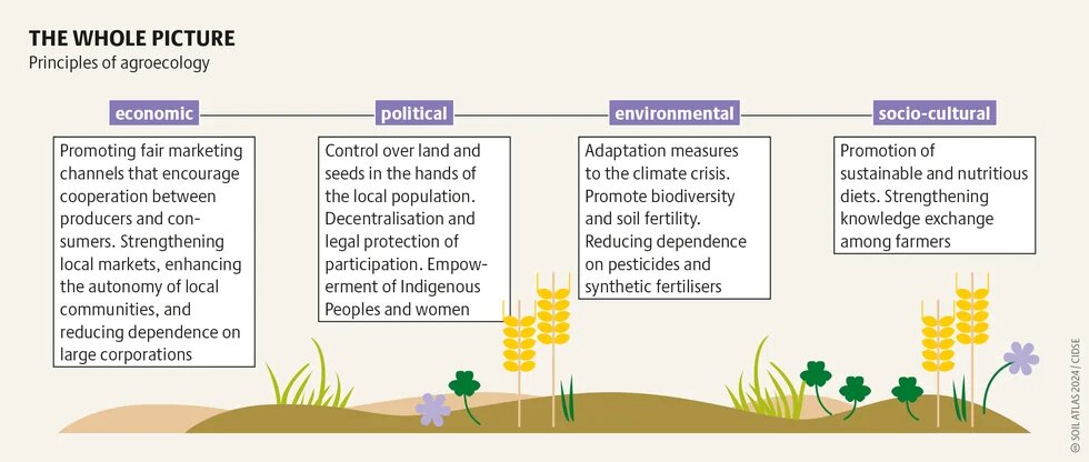 Agroecology is a bundle: it is a multidisciplinary science, a social movement, and a set of agricultural practices focused on the interaction of plants, animals, and humans. Its aims are to preserve natural resources and sustain agrifood systems. Healthy soils are the foundation of this approach since they support diverse microbial life and the nutrient cycle essential for plant growth. By prioritising soil conservation and biodiversity within soil ecosystems, agroecology aims to increase productivity while minimising environmental impact. It involves soil management methods, including the use of green manure, crop rotation and intercropping, the integration of native trees, erosion control, and the use of crop varieties adapted to local conditions. Agroecological coffee farming, for example, has increased plant biodiversity and improved soil quality in Brazil’s Atlantic forest, and agroforestry systems have enhanced soil fertility and soil health.