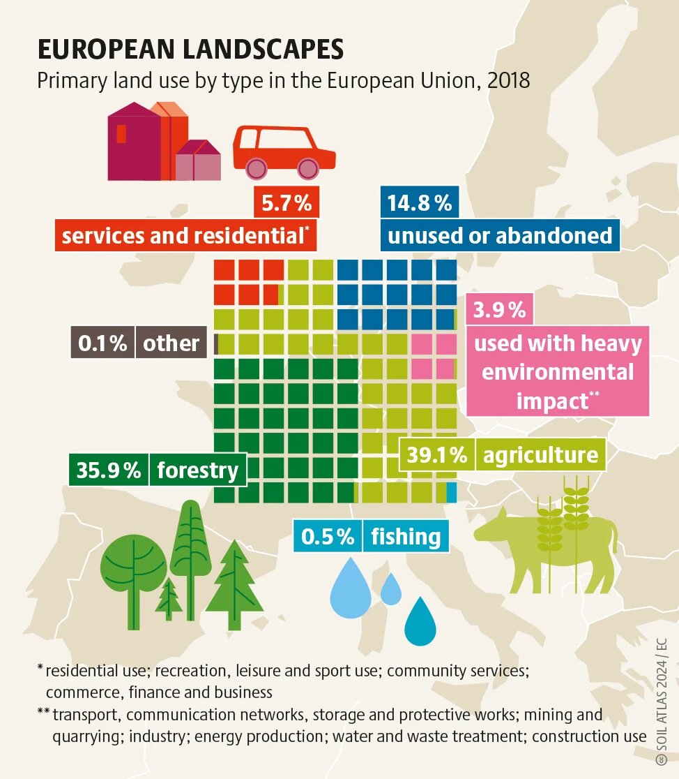 The Soil Atlas 2024 presents data and facts about the importance and condition of land, soils and arable land. In numerous graphics and text contributions, it provides a current insight into the condition of and threats to the soils on which we live.