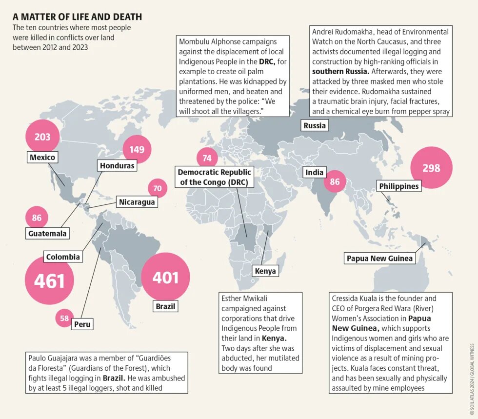 Equitable access to land and fertile soil is fundamental to realising human rights, such as the right to food. Although numerous United Nations declarations on land rights have been ratified by national governments, deadly land conflicts persist throughout the world.